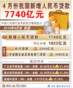 央行周二公布的4月份金融數(shù)據(jù)顯示,當(dāng)月,新增人民幣貸款7740億元,較上年同期多增1822億元。這一數(shù)據(jù)也高于此前市場預(yù)期,WIND對(duì)14家機(jī)構(gòu)的統(tǒng)計(jì)顯示,這些機(jī)構(gòu)對(duì)4月份人民幣新增貸款的預(yù)測中值在6635.7億元。1-4月,新增人民幣貸款累計(jì)已達(dá)3.37萬億元,至今新增人民幣貸款已達(dá)全年目標(biāo)的45%左右。 “4月份,信貸投放7740億元,比我們的預(yù)期值高2240億元。二季度預(yù)計(jì)信貸投放量在2萬億左右,調(diào)控基調(diào)仍趨緊。信貸超預(yù)期多投放,或是推動(dòng)之前央行調(diào)準(zhǔn)備金率的原因之一!鄙赉y萬國首席宏觀經(jīng)濟(jì)分析師李慧勇說。 對(duì)于未來的信貸增長,經(jīng)濟(jì)學(xué)家普遍認(rèn)為,大幅增加的可能性不大。 “從近幾個(gè)月的情況來看,信貸額度控制的效果較為明顯,銀行基本按照既定額度進(jìn)行均衡投放。近期出臺(tái)的房地產(chǎn)調(diào)控措施不但提高了貸款門檻,還會(huì)導(dǎo)致房地產(chǎn)市場觀望氣氛的形成,未來個(gè)人貸款增長乏力。預(yù)計(jì)未來信貸將回歸平穩(wěn)增長態(tài)勢,大幅增加的可能性不大。同時(shí),在票據(jù)存量有限、企業(yè)流動(dòng)資金貸款需求上升以及銀行主動(dòng)進(jìn)行結(jié)構(gòu)調(diào)整的情況下,未來貸款期限結(jié)構(gòu)趨于優(yōu)化。”交行金研中心研究員鄂永健說。 另外一個(gè)重要的金融數(shù)據(jù)——廣義貨幣供應(yīng)量(M2)的增速也進(jìn)一步回籠,但仍然繼續(xù)處于高位。截至4月末,M2余額65.66萬億元,較上年同期增長21.48%,增速低于3月末的22.5%,也低于上年同期25.95%的增速。但是,中國今年全年的M2增速目標(biāo)設(shè)置在17%左右。4月份的最新M2數(shù)據(jù)顯示,中國目前流動(dòng)性依然充裕,這將有利于維持經(jīng)濟(jì)的持續(xù)高增長,卻不利于達(dá)成控制資產(chǎn)泡沫和管理通脹預(yù)期的目標(biāo)。 中國銀行的中銀分析周報(bào)表示,資產(chǎn)價(jià)格的短期走勢無疑受到行業(yè)政策的顯著影響,但是長期趨勢與宏觀環(huán)境和流動(dòng)性環(huán)境密切相關(guān),宏觀流動(dòng)性因素支持中國房地產(chǎn)市場與股市可能出現(xiàn)此消彼長的走勢。 當(dāng)前,宏觀經(jīng)濟(jì)管理部門對(duì)資產(chǎn)泡沫和通脹預(yù)期十分重視,至今,中國已3次上調(diào)存款準(zhǔn)備金率,還通過窗口指導(dǎo)等方式嚴(yán)格控制銀行貸款,以減少流動(dòng)性泛濫的風(fēng)險(xiǎn)。這一政策組合使得二季度初并未出現(xiàn)年初貸款激增局面,1月份新增人民幣貸款高達(dá)1.39萬億。 鑒于這種流動(dòng)性充裕的局面依舊,未來的貨幣政策走向引人關(guān)注!霸谕鈪R占款增長較快的情況下,僅憑公開市場操作難以完成回籠資金的目的。未來外匯占款的變化情況需要持續(xù)予以密切關(guān)注,視具體情況年內(nèi)準(zhǔn)備金率可能繼續(xù)上調(diào)0.5-1.5個(gè)百分點(diǎn)!倍跤澜≌f,在公開市場,央行也會(huì)在未來幾個(gè)月內(nèi)繼續(xù)保持大規(guī)模回籠態(tài)勢。 不過,對(duì)于近期是否動(dòng)用價(jià)格工具,一些機(jī)構(gòu)認(rèn)為,短期內(nèi)加息的必要性有所降低。交通銀行預(yù)計(jì),利率調(diào)整可能要到三季度以后,維持上調(diào)1-2次、27-54個(gè)基點(diǎn)的判斷。原因在于:一是還需觀察負(fù)利率是否形成長期趨勢;二是未來經(jīng)濟(jì)過熱的風(fēng)險(xiǎn)降低;三是近日國內(nèi)股市大幅下挫,調(diào)控對(duì)房價(jià)的影響也會(huì)逐漸體現(xiàn),資產(chǎn)價(jià)格正在被擠壓;四是南歐債務(wù)危機(jī)襲擊全球金融市場,預(yù)計(jì)歐美各國將繼續(xù)保持低利率水平,其他國家或也推遲升息步伐。