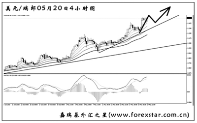 ▲美元兌瑞郎一路上沖,有連續(xù)第三周收出大陽線的可能。若圖中的小上升趨勢(shì)線保持完好,下周美元兌瑞郎即有望挑戰(zhàn)1.1970一線下方的阻力。短線以做多美元兌瑞郎為主,但在市場進(jìn)入到極大波幅期的時(shí)候,應(yīng)及時(shí)調(diào)整倉位,嚴(yán)格控制交易風(fēng)險(xiǎn)。