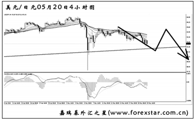 ▲英鎊兌美元下跌力度逐步加強(qiáng),已經(jīng)遠(yuǎn)離了下降趨勢(shì)線。從支撐上看,英鎊的下跌空間尚廣,思路上應(yīng)繼續(xù)做空。短線匯價(jià)的下跌動(dòng)能有所減弱,英鎊有先向上發(fā)起回調(diào)的風(fēng)險(xiǎn),但將在圖中均線系統(tǒng)的壓制下轉(zhuǎn)為下行,再度創(chuàng)出新低。