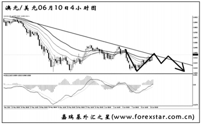 ▲澳元兌美元最近的一波下跌未能跌破前方低點(diǎn)的支撐0.8070,短線再度向上反彈,F(xiàn)匯價(jià)已經(jīng)接近了圖中下降趨勢(shì)線的阻力位0.8365,能否順利升破成為后市反彈的關(guān)鍵。日線圖上看,澳元的跌勢(shì)無任何改變,關(guān)注震蕩區(qū)間上沿0.8550的阻力,澳元在此一代遇阻的概率較大。