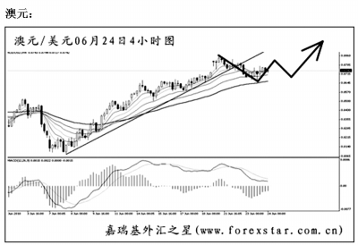 ▲澳元兌美元將圖中的上升趨勢(shì)線跌破,由于此前低位的震蕩區(qū)間上沿也被順利越過,澳元又重新形成了階段性的漲勢(shì)。目前匯價(jià)的上漲力度強(qiáng)勁,均線系統(tǒng)依托排列,且上方的空間也十分廣闊。所以對(duì)于澳元可繼續(xù)尋找做多的機(jī)會(huì)。后市再度走向0.9000的概率很大。