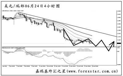 ▲美元兌瑞郎短線加速下跌,自高位下挫的力度強(qiáng)勁,現(xiàn)在在構(gòu)筑次要節(jié)奏調(diào)整。圖中均線系統(tǒng)壓制排列,匯價(jià)距離下降趨勢(shì)線較遠(yuǎn),后市仍有繼續(xù)創(chuàng)新低的欲望。目前美元兌瑞郎距下方道氏理論強(qiáng)支撐1.0925已經(jīng)不遠(yuǎn),短線依舊看空,但預(yù)計(jì)直接跌破有一定難度。