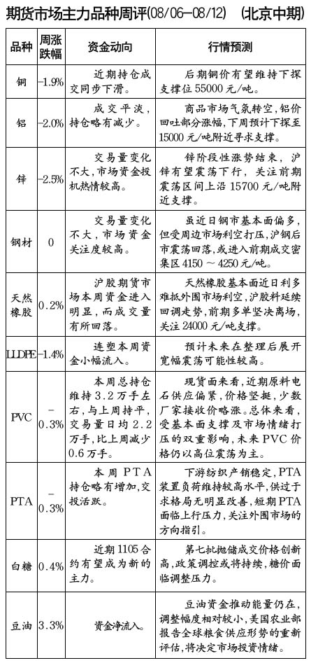期貨市場(chǎng)主力品種周評(píng)[08.06-08.12]