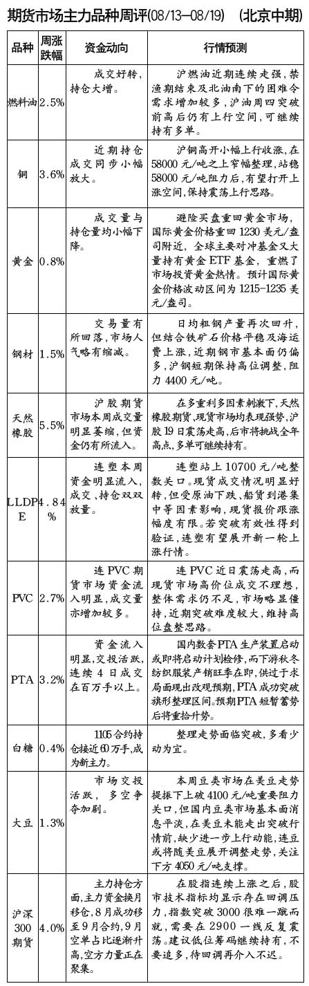 期貨市場主力品種周評[08/13-08/19]