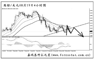 ▲英鎊兌美元短線的下跌動能有所減弱,圖中趨勢線為日線圖形成,現(xiàn)匯價正在考驗此線的支撐作用。4小時圖均線系統(tǒng)壓制排列,短線英鎊有望重新上探一次趨勢線,但最終跌破轉(zhuǎn)為下行的希望很大。操作上可等英鎊再度跌破1.5500之后等調(diào)整做空。