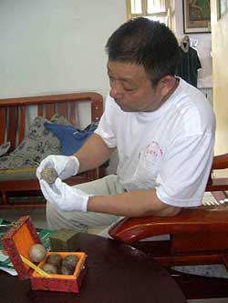 | 姜愛(ài)國(guó)手中的捶丸均是從山東東平縣州城(宋代被稱為鄆州,為當(dāng)時(shí)著名的文化古城)收集而來(lái)。 | 千年前“捶丸”實(shí)物世間亮相