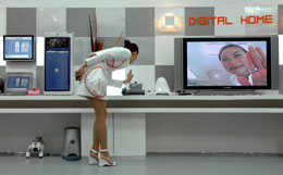 工作人員演示“數(shù)字家庭”的電子裝備。 本報(bào)記者 呂小煒 攝 |
