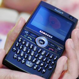 韓國三星公司的一款可拍照商務(wù)手機(jī)。 本報(bào)記者 公磊 攝 |