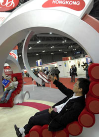 在這次電信展上,許多企業(yè)的展館都有兩三層樓高,設(shè)計(jì)美輪美奐,如阿爾卡特朗訊的“水晶吊燈裝飾”、華為的“樓上咖啡室”、摩托羅拉的“地鐵車廂”等,令人目不暇接。