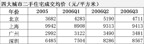 四大城市二手住宅成交均價