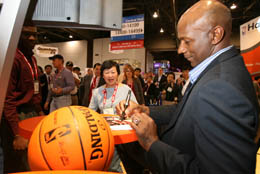 海爾是NBA的官方全球高清合作伙伴。在拉斯維加斯舉行的國際消費電子展上,NBA傳奇人物德雷克斯勒在海爾公司展廳為海爾高清液晶電視的參觀者簽名。本報記者:呂明響