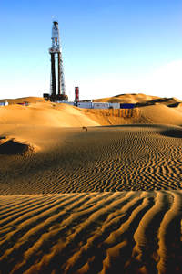 圖為中國石油集團(tuán)位于塔里木盆地里的沙漠鉆井。