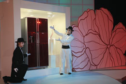 LG近日在上海發(fā)布的豪門對(duì)開門冰箱。 本報(bào)記者:韓丹 攝 |