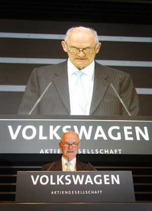 4月19日,歐洲最大汽車制造商大眾公司監(jiān)事會(huì)主席皮希在德國漢堡召開的公司年會(huì)上講話。大眾公司18日宣布,今年第一季度,由于公司的全球銷量穩(wěn)定增長,其凈利潤比去年同期翻番,達(dá)到7.4億歐元。
