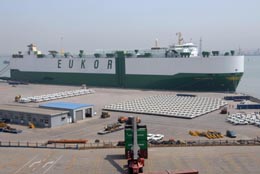 近日,世界頂級(jí)滾裝船舶“卡洛斯”號(hào)搭載奧迪、歐寶、雷諾高級(jí)轎車以及沃爾沃礦山工程車等1095輛在天津港滾裝碼頭登陸。這是天津口岸今年迎來的最大批量進(jìn)口商品車,創(chuàng)造了天津港今年單船接卸汽車的新紀(jì)錄。瑞典籍“卡羅斯”號(hào)滾裝船,隸屬于著名的EUKOR船公司,是世界最大的滾裝船之一。