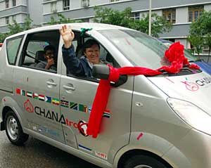 5月11日,由長(zhǎng)安汽車(chē)集團(tuán)旗下4輛中國(guó)自主品牌汽車(chē)組成的南非遠(yuǎn)行車(chē)隊(duì)在渝啟程。新華社記者 劉潺