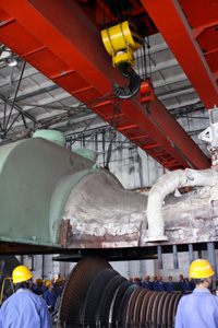日前,國(guó)電石嘴山第一發(fā)電有限公司的3#行車(chē)正在將小火電的汽缸緩緩吊起。當(dāng)天,寧夏回族自治區(qū)在石嘴山市正式關(guān)停了運(yùn)行20多年的4臺(tái)共計(jì)15萬(wàn)千瓦小火電發(fā)電機(jī)組。截至目前,寧夏已經(jīng)關(guān)停20萬(wàn)千瓦小型火電機(jī)組。“十一五”期間,寧夏計(jì)劃關(guān)停74萬(wàn)千瓦的小型火電機(jī)組。 |