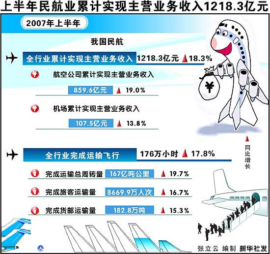 上半年民航業(yè)實(shí)現(xiàn)主營業(yè)務(wù)收入1218.3億元