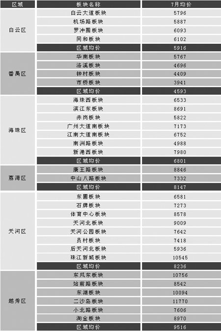 7月份中原(廣州)領(lǐng)先指數(shù)為156.1點,比上月增加了5點,漲幅為3.3%。7月二手住宅買賣成交量則更勝上月旺勢,環(huán)比大漲一成以上,其中白云、番禺兩區(qū)的增幅更是達(dá)到三成。市民對樓市前景看好、對樓價預(yù)期樂觀,這是本月樓市價量齊升的重要原因之一;而飆升的一手房價與旺盛的自住需求對二手樓價的拉動作用也不容忽視。