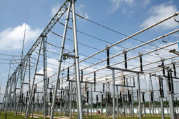 2007年6月投入運行的欽州500千伏久隆變電站是北部灣沿海地區(qū)第一座投入運行的500千伏變電站。這個電站的投運加強了廣西電網(wǎng)500千伏骨干網(wǎng)架,使電網(wǎng)的供電能力、安全穩(wěn)定水平和供電可靠性大大提高,不僅滿足欽州及廣西東南部地區(qū)用電負荷增長的需要,還成為廣西加速建設(shè)“西電東送”的重要電源基地。圖為廣西欽州500千伏久隆變電站。