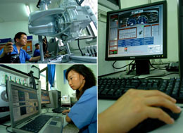 一汽技術(shù)中心發(fā)動(dòng)機(jī)部主任工程師崔曉娟告訴記者:“我們的科研不是找金子,而是要找到找金子的方法! 一汽的綜合研發(fā)注重方法研究,建立并完善了科學(xué)的開(kāi)發(fā)流程。承擔(dān)一汽集團(tuán)商用車、乘用車和主要總成開(kāi)發(fā)重?fù)?dān)的一汽技術(shù)中心,近幾年通過(guò)引進(jìn)技術(shù)與聯(lián)合設(shè)計(jì)項(xiàng)目,研發(fā)人員不僅學(xué)到了先進(jìn)的產(chǎn)品技術(shù),而且還建立了符合國(guó)際汽車質(zhì)量標(biāo)準(zhǔn)的產(chǎn)品研發(fā)流程和質(zhì)量保證體系。 正是發(fā)現(xiàn)了找金子的方法,在基礎(chǔ)研究領(lǐng)域,一汽通過(guò)聯(lián)合開(kāi)發(fā)、產(chǎn)學(xué)研合作開(kāi)發(fā)等多種方式,“十五”期間完成了以“解放牌混合動(dòng)力城市客車研究開(kāi)發(fā)”“紅旗混合動(dòng)力轎車的研發(fā)”“支持汽車電子的嵌入式軟件平臺(tái)”為代表的國(guó)家“863”項(xiàng)目。其中電動(dòng)汽車是國(guó)家“863”計(jì)劃中特別設(shè)立的重大專項(xiàng),通過(guò)承擔(dān)這項(xiàng)任務(wù)使一汽混合動(dòng)力汽車技術(shù)在國(guó)內(nèi)處于領(lǐng)先地位。 正是發(fā)現(xiàn)了找金子的方法,在商用車產(chǎn)品開(kāi)發(fā)中,一汽形成了商用車全系列自主開(kāi)發(fā)能力,包括整車操縱穩(wěn)定性、動(dòng)力性、經(jīng)濟(jì)性、可靠性、主被動(dòng)安全性、增壓中冷、排氣制動(dòng)、四氣門(mén)技術(shù)、電控技術(shù)、高壓共軌噴射技術(shù)、燃燒技術(shù)、預(yù)緊式安全帶、空氣動(dòng)力學(xué)優(yōu)化、空氣懸浮式懸置、雙前軸平衡懸架、操縱安全控制策略、盤(pán)式制動(dòng)器、ABS系統(tǒng)、驅(qū)動(dòng)防滑系統(tǒng)、底盤(pán)系統(tǒng)綜合控制等40多項(xiàng)關(guān)鍵核心技術(shù)。 正是發(fā)現(xiàn)了找金子的方法,在乘用車開(kāi)發(fā)中,一汽技術(shù)中心基本形成了中級(jí)和中級(jí)以下自主開(kāi)發(fā)能力,擁有了30多項(xiàng)關(guān)鍵技術(shù)。已具備中高檔轎車整車匹配和轎車車身的開(kāi)發(fā)及完全自主開(kāi)發(fā)經(jīng)濟(jì)型轎車的能力。