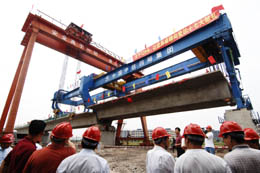 最大客運(yùn)專線鐵路箱梁在武廣高速鐵路架設(shè)