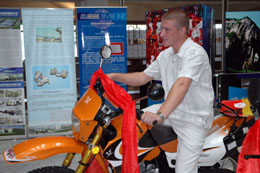據(jù)有關(guān)部門提供的數(shù)據(jù)顯示,我國目前摩托車企業(yè)有155家,摩托車品牌有400個(gè),其中自主品牌384個(gè)占總數(shù)的96%,2006年摩托車產(chǎn)銷量突破2000萬輛,占世界總產(chǎn)量一半以上,產(chǎn)業(yè)發(fā)展速度達(dá)到近年來最好水。圖為在俄羅斯舉辦的“中國年·重慶周”活動(dòng),俄羅斯觀眾對重慶的摩托車非常感興趣。 新華社記者:劉軼芳