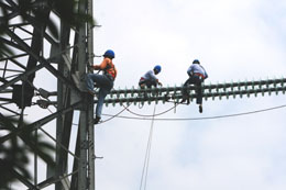 為確保輸電線路安全穩(wěn)定運行,南方電網(wǎng)公司興安直流近日開始首次全線停電檢查。圖為南方電網(wǎng)超高壓公司廣州局職工冒著34℃的高溫對自爆玻璃絕緣子進行檢查更換。