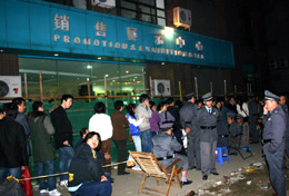 今年8月以來,杭州大量樓盤售價(jià)每平方米漲幅在千元以上,有的漲幅超過5000元,杭州市區(qū)目前均價(jià)每平方米已經(jīng)超過一萬元。圖為購房者在杭州西郊一樓盤銷售處前連夜排隊(duì)領(lǐng)房號(hào)。本報(bào)記者:裘立華