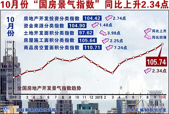 10月份“國房景氣指數(shù)”同比上升2.34點