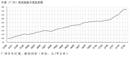 2007年11月,中原(廣州)領(lǐng)先指數(shù)為173.7,比上月增加1個(gè)百分點(diǎn),環(huán)比上漲0.6%。中原領(lǐng)先指數(shù)在本月結(jié)束了自今年6月份以來(lái)的快速增長(zhǎng),開始以較為穩(wěn)健的步伐小幅向上攀升。即便如此,指數(shù)漲幅與去年同期相比,仍然高出了0.2%。受到樓市觀望情緒持續(xù)、一手樓盤紛紛降價(jià)促銷的影響,二手市場(chǎng)的成交速度有所放緩、成交量明顯下降、業(yè)主放盤更加理智是指數(shù)漲幅回歸穩(wěn)健的主要因素之一。部分業(yè)主受到股市下挫、年底資金周轉(zhuǎn)等因素影響,心態(tài)開始軟化,放盤價(jià)更貼近市場(chǎng)、更趨向合理,少數(shù)業(yè)主更是主動(dòng)承擔(dān)交易稅費(fèi),一時(shí)間筍盤大量涌現(xiàn),不少買家則看準(zhǔn)了時(shí)機(jī)、趁低吸納。