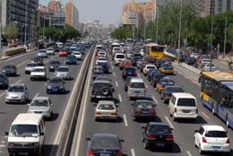 據(jù)公安部消息,截至2007年年底,全國機(jī)動車保有量為1.598億輛,繼續(xù)保持快速增長,汽車和摩托車為機(jī)動車的主要構(gòu)成部分。圖為北京西二環(huán)路上密集的車流。新華社記者:李曉果