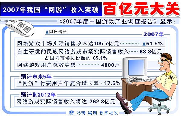 2007年我國(guó)“網(wǎng)游”收入突破百億元大關(guān)