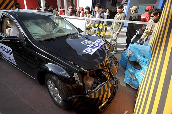 中國(guó)汽車安全主題巡展3月15日在北京啟程,本次巡展活動(dòng)為期三個(gè)月,主要有安全汽車展覽、安全論壇等活動(dòng),包括了向消費(fèi)者介紹汽車碰撞試驗(yàn)、交通安全和汽車安全問題等內(nèi)容。觀眾正仔細(xì)觀察一家企業(yè)擺放的經(jīng)過碰撞實(shí)驗(yàn)的汽車。