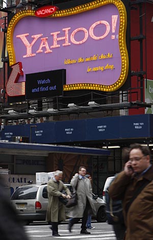 | 7日,行人從美國紐約時代廣場上的雅虎標志牌前走過。雅虎當天正式回應微軟方面的“最后通牒”,稱其提供的446億美元收購價過低,因而拒絕此報價。新華社/路透 | 雅虎公司7日正式對微軟公司發(fā)出的“最后通牒”予以回應,表示如果微軟能夠出更高的價格,將會同意收購;否則,堅決不接受“低于雅虎價值”的報價。同時,雅虎還認為,微軟的惡意收購不可能成功,稱這有悖于微軟此前表達的“友好交易”的原則。一時間,這樁互聯(lián)網(wǎng)業(yè)界廣為關(guān)注的并購案再次陷入僵局。