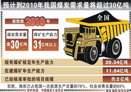 預(yù)計(jì)到2010年我國(guó)煤炭需求量將超過30億噸