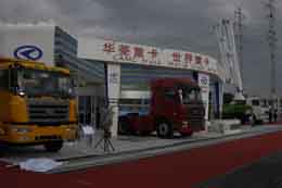 作為中國(guó)新興商用車企業(yè)的領(lǐng)軍人物,華菱汽車攜五款自主研發(fā)的成熟車型亮相第十屆北京國(guó)際車展!皣(guó)Ⅲ標(biāo)準(zhǔn)”和“國(guó)際戰(zhàn)略”是華菱此次參展的“兩大亮點(diǎn)”! 如今的華菱已經(jīng)從當(dāng)年的重卡黑馬成長(zhǎng)為在海內(nèi)外頗具影響力的重卡品牌。截至2007年底,已經(jīng)有3萬多輛華菱重卡馳騁在世界各地,今年華菱的海外銷售目標(biāo)是力爭(zhēng)突破8000輛大關(guān)。在本次車展上,華菱精心挑選出了五款參展車型,這是華菱近幾年來科技創(chuàng)新和自主研發(fā)的成果展示,均達(dá)到了國(guó)Ⅲ排放標(biāo)準(zhǔn)。在2008年商務(wù)大會(huì)上,華菱提出了“定義國(guó)Ⅲ新標(biāo)準(zhǔn)”品牌宣言,成為中國(guó)重卡新標(biāo)桿。