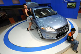 5月1日,一個孩子在汽車展位上休息。當日,“五一汽車展銷會”在南京市規(guī)劃建設展覽館開幕,20多個國內外知名品牌、60多款新車參加展銷。
