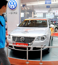 為期一周的第三屆中國長春汽車工業(yè)展覽會6月27日在長春國際會展中心開幕,共有國內外32個品牌的300輛車在此次車展中“同場競技”。圖為一汽-大眾攜奧運火炬?zhèn)鬟f車在車展中亮相。