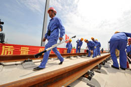 | 武廣客運(yùn)專線咸寧試驗(yàn)段開始鋪設(shè)鐵軌[圖] |