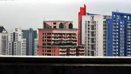 近日,廣州市國土資源和房屋管理局公布最新房地產(chǎn)市場分析報告,顯示2008年5月份全市一手住宅成交量只有39.31萬平方米,為三年來同期成交量的最低位。圖為廣州市天河中心區(qū)一角。新華社記者:壯錦