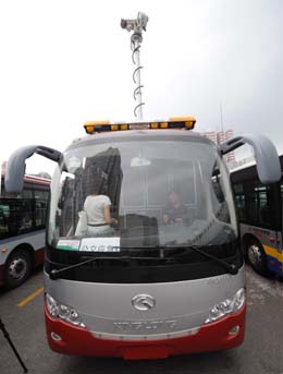 作為大型活動(dòng)、突發(fā)事件的公交臨時(shí)“指揮大腦”,北京市29日啟用了公交應(yīng)急指揮車。它不僅可以調(diào)派公交車,還可以采集事件地點(diǎn)周邊人流、公交運(yùn)行情況通過(guò)衛(wèi)星等發(fā)送方式傳輸至北京公交集團(tuán)的監(jiān)控指揮中心。