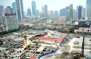 據(jù)上海統(tǒng)計(jì)局?jǐn)?shù)據(jù)顯示,1至7月,上海市房地產(chǎn)開(kāi)發(fā)投資770.39億元,增長(zhǎng)7.6%。圖為上海市中心一處正在建設(shè)中的商品房工地。
