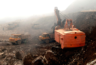 云南錫業(yè)集團(tuán)電鏟隊(duì)在大陡山露天礦場進(jìn)行機(jī)械化開采。本報(bào)記者:周重要