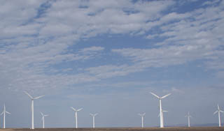 由甘肅火電工程公司承建的甘肅景泰興泉風(fēng)電場(chǎng)30臺(tái)機(jī)組近日安裝完工。這項(xiàng)工程總投資3.97億元,總裝機(jī)容量4.5萬(wàn)千瓦,年上網(wǎng)電量8420萬(wàn)千瓦時(shí)。圖為即將并網(wǎng)發(fā)電的風(fēng)力發(fā)電機(jī)組。 |