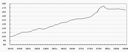 2008年9月,中原(廣州)領(lǐng)先指數(shù)為164點,樣本成交均價為8138元/平方米,環(huán)比下跌1.3個百分點。廣州住宅市場繼續(xù)觀望,9月份二手住宅的成交面積、成交金額分別有明顯的減少。