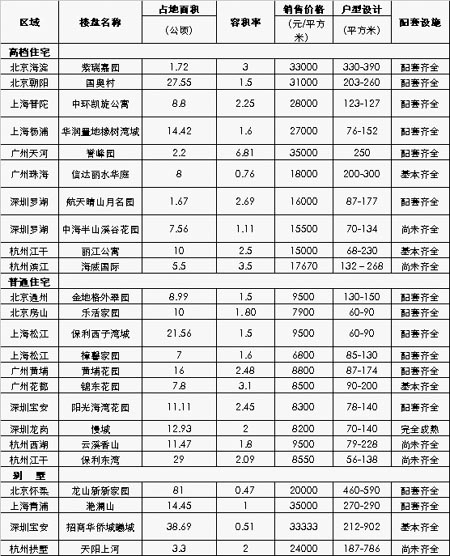 2007年7月全國主要城市一手住宅典型個案