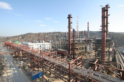陜北能源重化工基地重點(diǎn)項(xiàng)目——陜西延長石油集團(tuán)公司楊莊河煉化項(xiàng)目,目前進(jìn)入施工高峰期,項(xiàng)目一期工程預(yù)計(jì)明年3月試車投產(chǎn)。該項(xiàng)目總投資概算為70億元人民幣、占地73.84公頃。圖為由陜西化建工程有限責(zé)任公司總承包的楊莊河煉化項(xiàng)目一期新建120萬噸重整裝置施工建設(shè)。 |