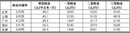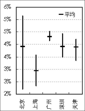 上海租金回報(bào)率在五城市中最低,在2008年3月時(shí),這一指標(biāo)滑落至3%以下,目前僅2.93%。