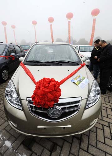 1月9日,湖南省在長沙縣啟動了“汽車下鄉(xiāng)”試點活動,當(dāng)?shù)剞r(nóng)民購買汽車,除了廠家讓利優(yōu)惠外,政府還將給予補貼和貸款貼息。圖為消費者在“汽車下鄉(xiāng)”活動現(xiàn)場選購長豐獵豹汽車。本報記者:龍弘濤